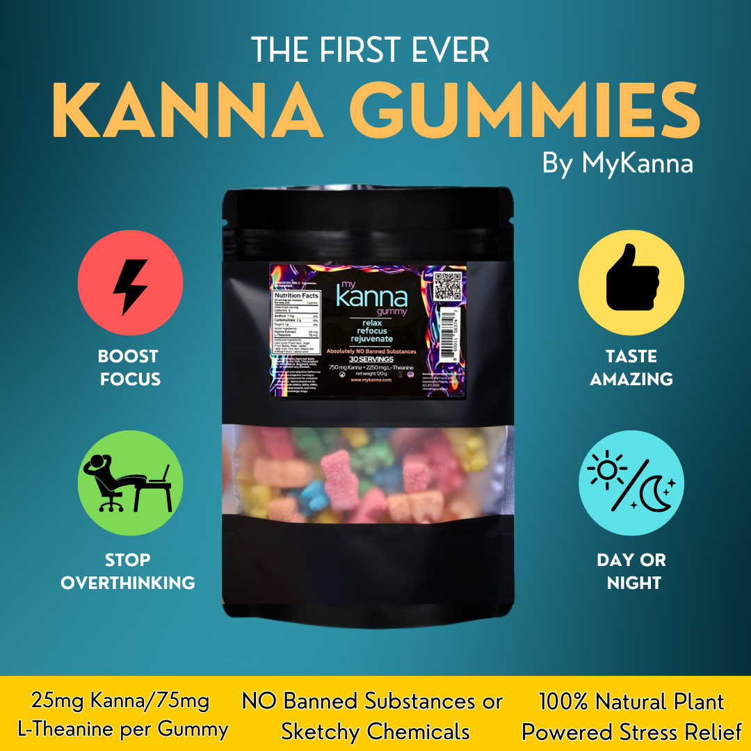 At MyKanna, we set out to create more than just a supplement—we wanted an experience that enhances your day without sacrificing taste or convenience. Inspired by centuries of natural wellness practices, we combined Kanna (Sceletium tortuosum), a revered South African plant known for its mood-boosting and stress-relieving properties, with L-Theanine, a scientifically proven amino acid for relaxation and focus. The result? A gummy that brings ancient wisdom and modern science together in the most delicious way possible. With ZERO banned substances!